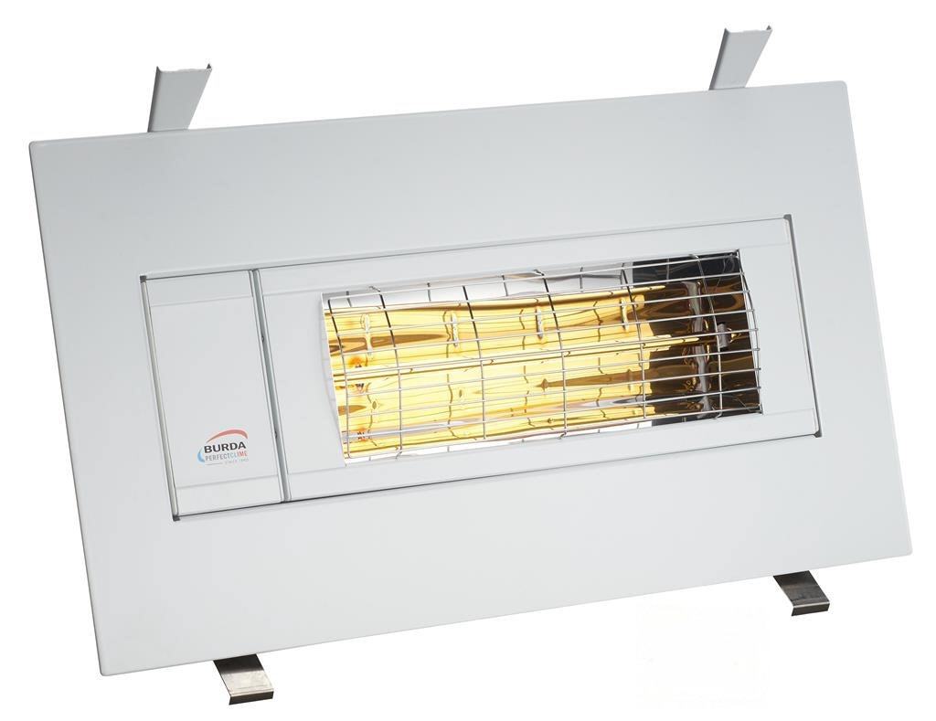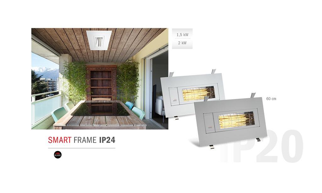 Burda Smart Frame BHSF2024-2 Low Glare Decken- und Wandeinbaumodell mit Spritzwasserschutz IP24 im rostfreien Aluminiumrahmen für geschützte Außenbereiche. Mit einer Leistung von 2.000 Watt versorgt der Einbaustrahler eine Fläche von circa 14 - 16 qm zuverlässig und schnell mit Sofortwärme.