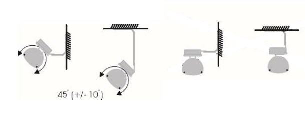 Montage: Wand- und Deckenmontage, Face Down und 45° Anbringungswinkel HINWEIS: