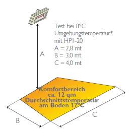 Großer Vorteil der Infrarotstrahler ist, dass einerseits nur beheizt wird wenn effektiv Wärme benötigt wird und andererseits 100% der Wärme sofort nach dem Einschalten des Gerätes spürbar ist.