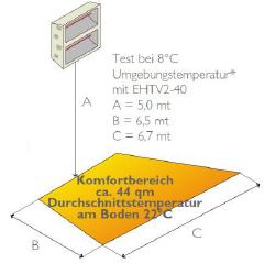 - Beheizbare Fläche: doppel bis 43/44 m2