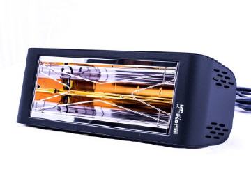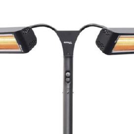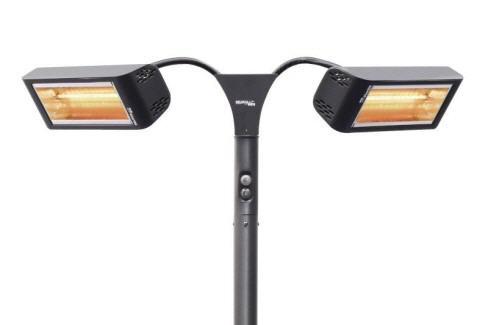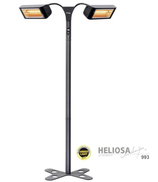 Infrarot Heizstrahler Heliosa Hi Design 993 IPx5 mit 2 x Heliosa 44 Heizstrahlern an "flexiblen" Armen mit 1.500 Watt Amber Light Heizröhren für Kerzenscheinathmosphäre.