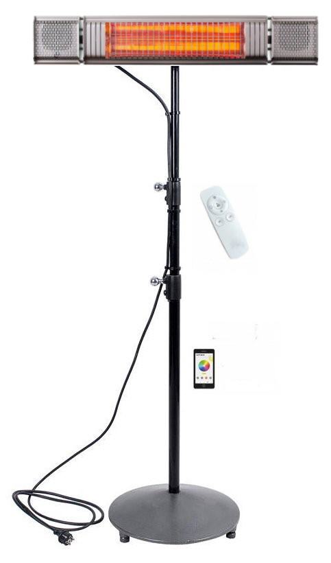 ebenfalls über App oder Fernbedienung, geregelt und allen Bedürfnissen angepasst werden. In höchster Stufe kann man die Wärme etwa 3,5 Meter weit, bei einer Breite von 5,5 Metern sicher spüren (Reflektor strahlt horizontal mit ca. 90° ab). Ausgestattet mit der aktuellen Amber Light Technik, 80% weniger Lichtaustritt wie bei herkömmlichen Infrarotstrahlern ohne Wärmeverluste.