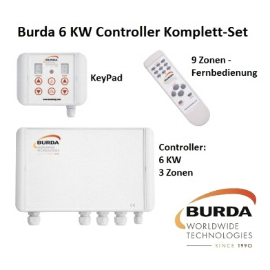 Der Burda Controller BHC 6003 ER - besteht aus dem Keypad zur stationären Steuerung von bis zu 9 Wärme bzw. Licht Zonen. Inklusive Fernbedieung ist sie ideale Ergänzung für Ihre Heizstrahler - auch für Burda L&H (licht & Wärme) Versionen.